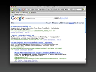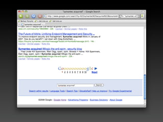 This document discusses zero-day vulnerabilities and the zero-day market. It describes what a zero-day is, how they are obtained and traded, various players in the zero-day industry, and programs that pay for the discovery and disclosure of zero-days. The document also notes that many security companies acquire startups to expand their solutions, and while companies invest in security, common issues still exist like weak passwords and misconfigurations.
