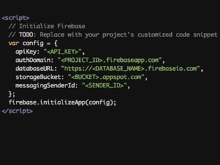 The document discusses real-time messaging development using technologies such as Redis for pub/sub functionality and Firebase for various backend needs. It covers the setup of a messaging queue, user authentication, state management through Redux and Redux-Saga, and the creation of a responsive front-end application. Key components include a demo setup to manage real-time interactions and features like loading balances and centralized logging for debugging.