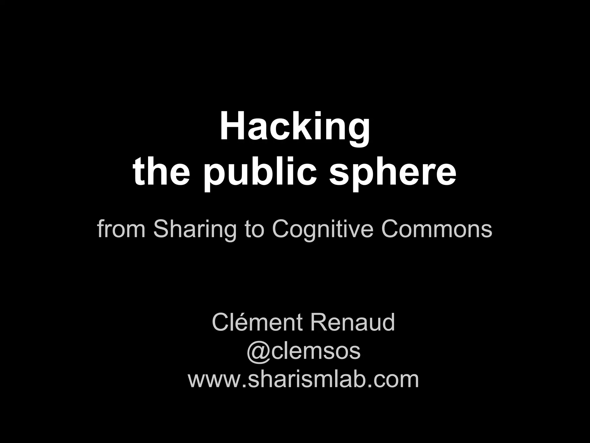 This document discusses the transition from private to public spheres online and proposes building a "cognitive commons" through sharing and crowdsourcing knowledge. It argues that technologies should be designed to empower users and meet community needs through open models like hackerspaces, Fab Labs, and distributed networks. The goal is for people to work together, learn new skills, and produce technologies to solve real problems through an ongoing process of "sharing, hacking and improving designs." This collaborative approach could help crowd-produce a more equitable digital public sphere.