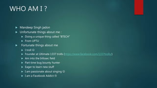 The document is a comprehensive guide on wireless networking, detailing the fundamentals of Wireless LAN (WLAN), its security protocols like WEP and WPA, and common vulnerabilities. It covers topics such as wireless sniffing, authentication processes, and various attack methods including WPS attacks and advanced techniques like PixieWPS. The author also provides essential security tips to safeguard wireless networks and acknowledges various resources for further learning.