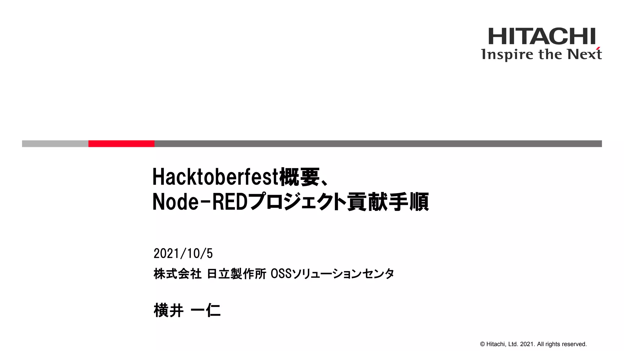 10/5(火)にNode-RED User Group Japan主催で開催された勉強会 「Node-RED UG Hacktoberfest 2021 説明会」での発表スライドです。 - 動画: https://youtu.be/dl_4MxT94l0 - 勉強会サイト: https://node-red.connpass.com/event/223770/