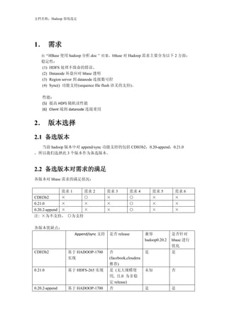 文档名称:Hadoop 基线选定