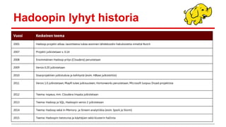 2008 Ensimmäinen Hadoop-yritys (Cloudera) perustetaan