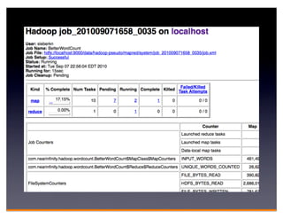 Hadoop is an open-source framework for distributed storage and processing of large datasets across clusters of computers. It consists of HDFS for distributed storage and MapReduce for distributed processing. HDFS stores large files across multiple machines and provides high throughput access to application data. MapReduce allows processing of large datasets in parallel by splitting the work into independent tasks called maps and reduces. Companies use Hadoop for applications like log analysis, data warehousing, machine learning, and scientific computing on large datasets.
