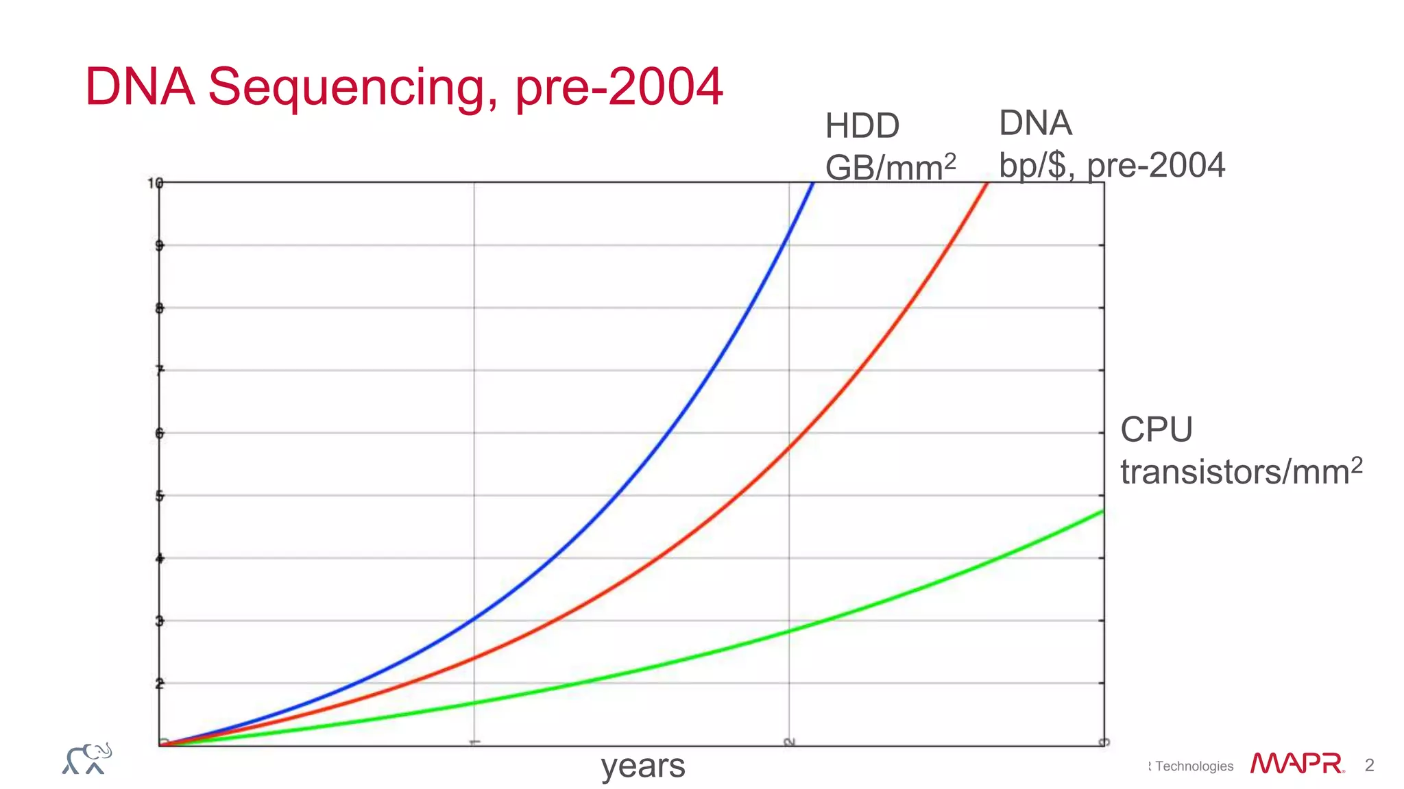 The document discusses the evolution and potential of genomics, particularly focusing on DNA sequencing and related analytics applications. It highlights the shift from traditional research-driven genomics to clinical applications, emphasizing opportunities for personalized medicine and innovations in data analysis. The authors advocate for improved data processing solutions to handle the growing complexity and scale of genomic data, drawing parallels with identity solutions like Aadhaar in India.