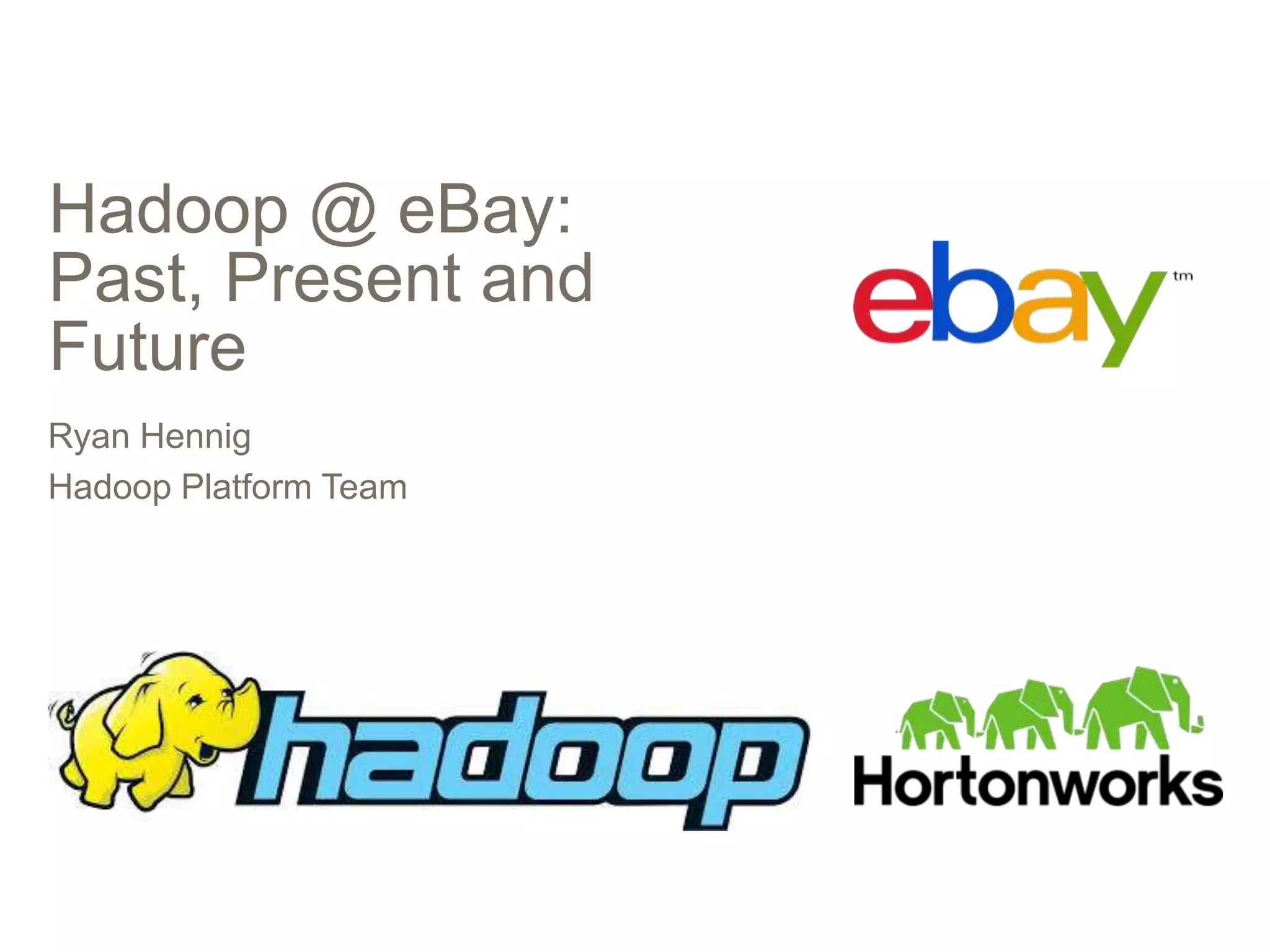 The document discusses the evolution and current use of Hadoop at eBay, detailing its growth, partnerships, and operational tools. It covers the transition from shared clusters to more specialized dedicated clusters along with various use cases such as search engine indexing and analytics dashboards. The future of Hadoop at eBay emphasizes advancements like HDFS federation, yarn for resource management, and a focus on operational efficiency and open source contributions.