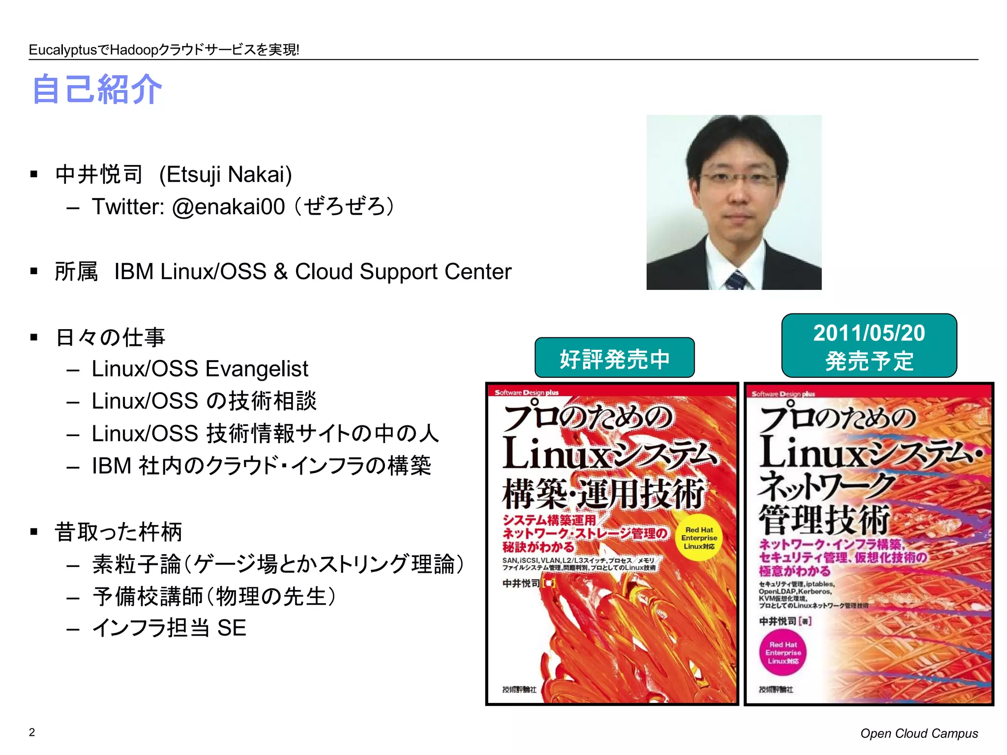 – 2009 年 4 月に開発者達で Eucalyptus Systems, Inc. を設立し、ビジネス化。現在は