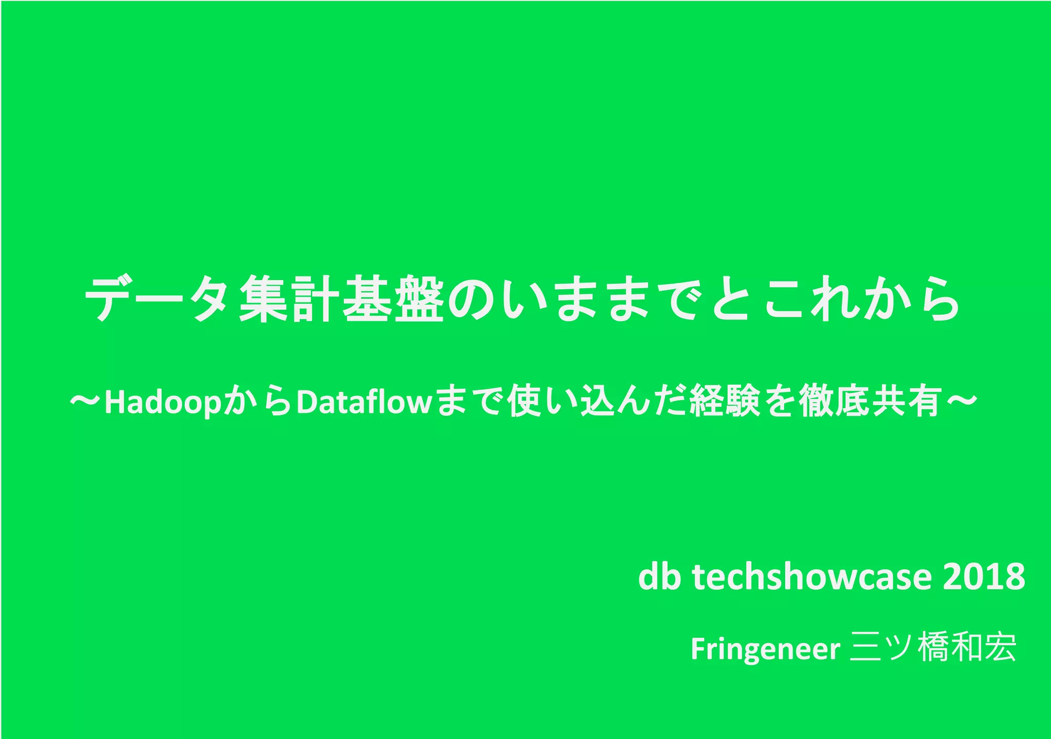 DB(mysql)上で実行することから始まった広告系大量データの処理に関して、試行錯誤しながらもHadoopを経てdataflow(BigQuery)に置き換えて大幅な効率化、低コスト化を実現。その過程で得た大量データを効率的に処理するための使いこなし戦略について徹底共有。