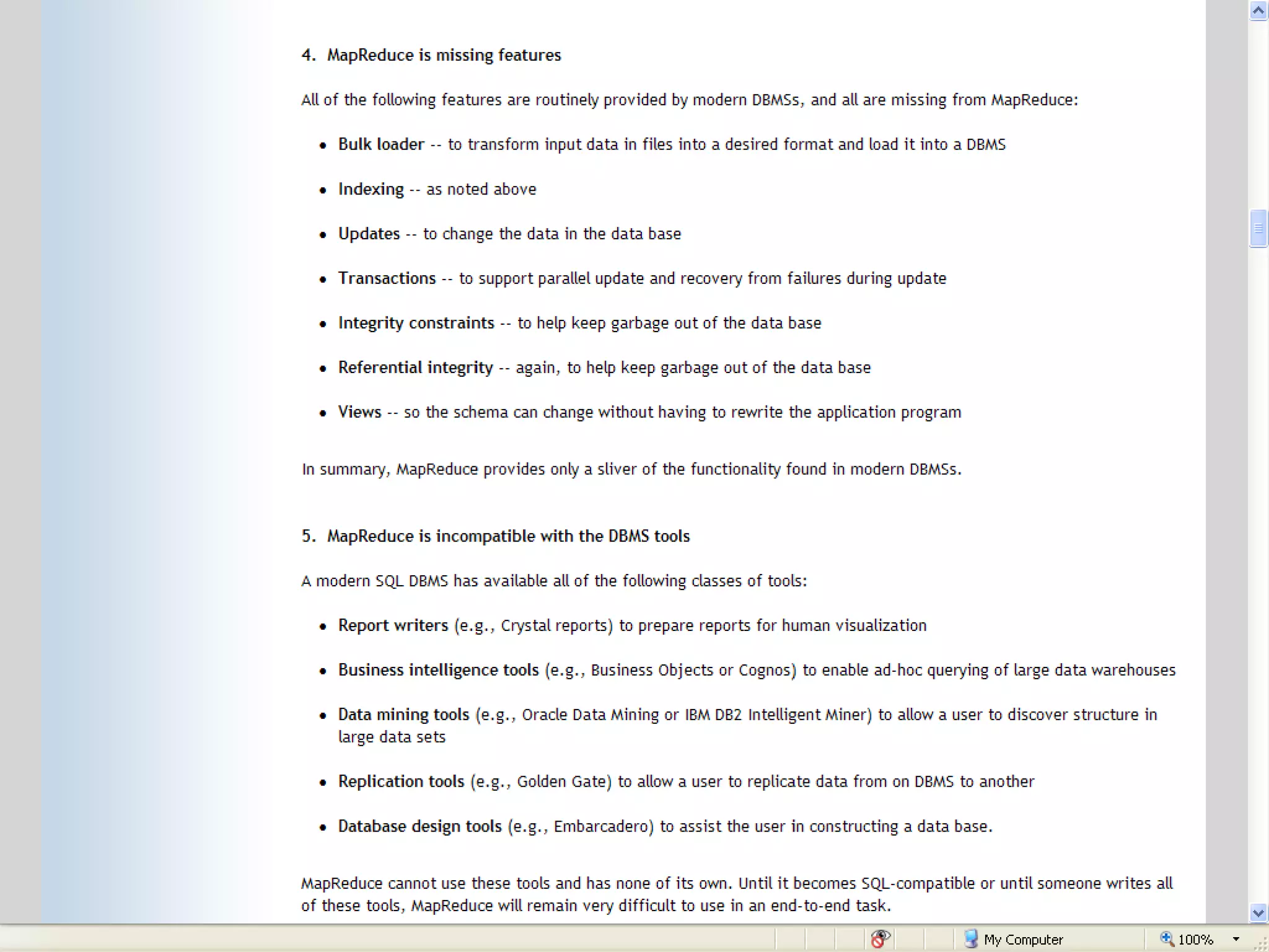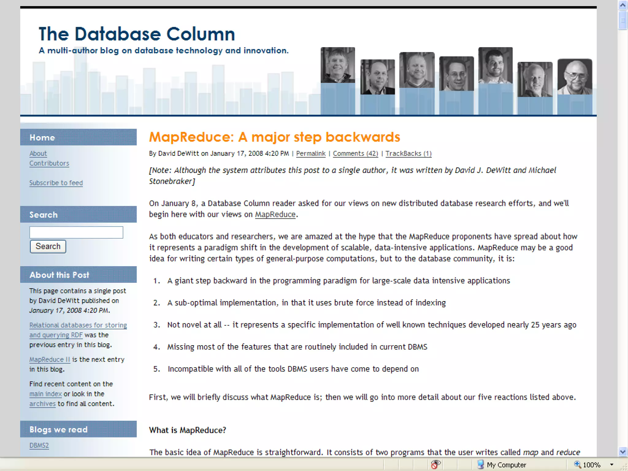 The document discusses the relationship between MapReduce systems like Hadoop and parallel database systems. It summarizes the history of MapReduce and describes benchmarks comparing Hadoop to parallel databases. While Hadoop has advantages for unstructured data processing, databases are better for structured queries. However, Hadoop is improving and being used more widely for data warehousing. HadoopDB is introduced as a way to use Hadoop for coordination while running queries on independent database systems for better performance.