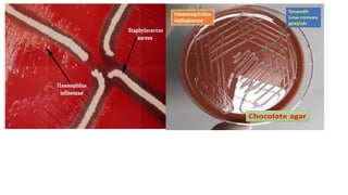 Haemophilus is a genus of Gram-negative, nonmotile bacteria that are typically small coccobacilli in shape. They require factors like hemin and NAD found in blood or chocolate agar to grow. While most Haemophilus species live harmlessly in their hosts, some like H. influenzae and H. ducreyi can cause disease. H. influenzae commonly causes infections like pneumonia, meningitis, and epiglottitis in young children, but routine use of the Hib vaccine in many countries has significantly reduced cases of invasive Hib disease. Unencapsulated H. influenzae strains still cause ear, eye, and sinus infections in children.
