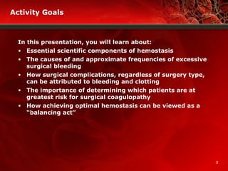 - How achieving optimal hemostasis requires balancing procoagulant, anticoagulant, fibrinolytic and antifibrinolytic factors.