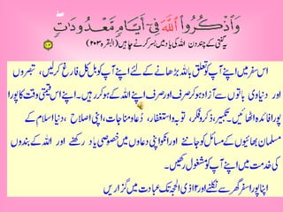 وَاذْكُرُوا اللَّٰ فِ اَیاا م امعْد وْ د ت یہ گنتی کے چند روز ہیں جو تمہیں اللہ کی یاد