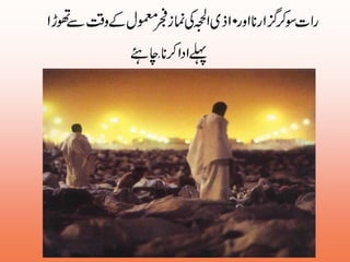 13 . مزدلفہ کے لئے چادر، گرم چادر، خالی بوتل ساتھ رکھ ليں۔