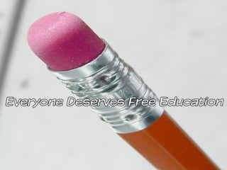 The document argues that higher education should be free for all students. It claims that free higher education would lead to smarter high school students, that money does not determine the quality of education, and that people should keep their money instead of paying for college. The document encourages starting higher education in high school and questions why people should pay to work. It promotes the idea that free higher education would provide wealthier friends and a better school. In the end, the document tells readers to share the message with friends.