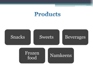 The document describes Haldiram's supply chain and distribution network for delivering snacks from factories to customers. Key aspects include: