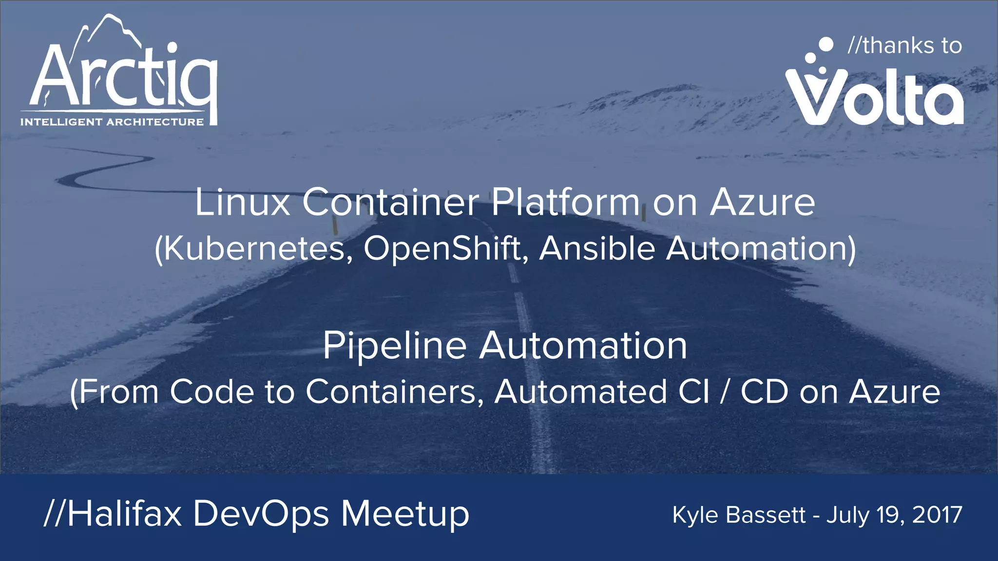 The document discusses the integration of Linux container platforms such as Kubernetes and OpenShift on Azure, focusing on pipeline automation using tools like Ansible for continuous integration and deployment. It outlines key benefits, features, and operational requirements of using these technologies, emphasizing improved security, time-to-market, and operational efficiencies. Additionally, the document features links to useful resources and highlights Arctiq's expertise and hiring opportunities.
