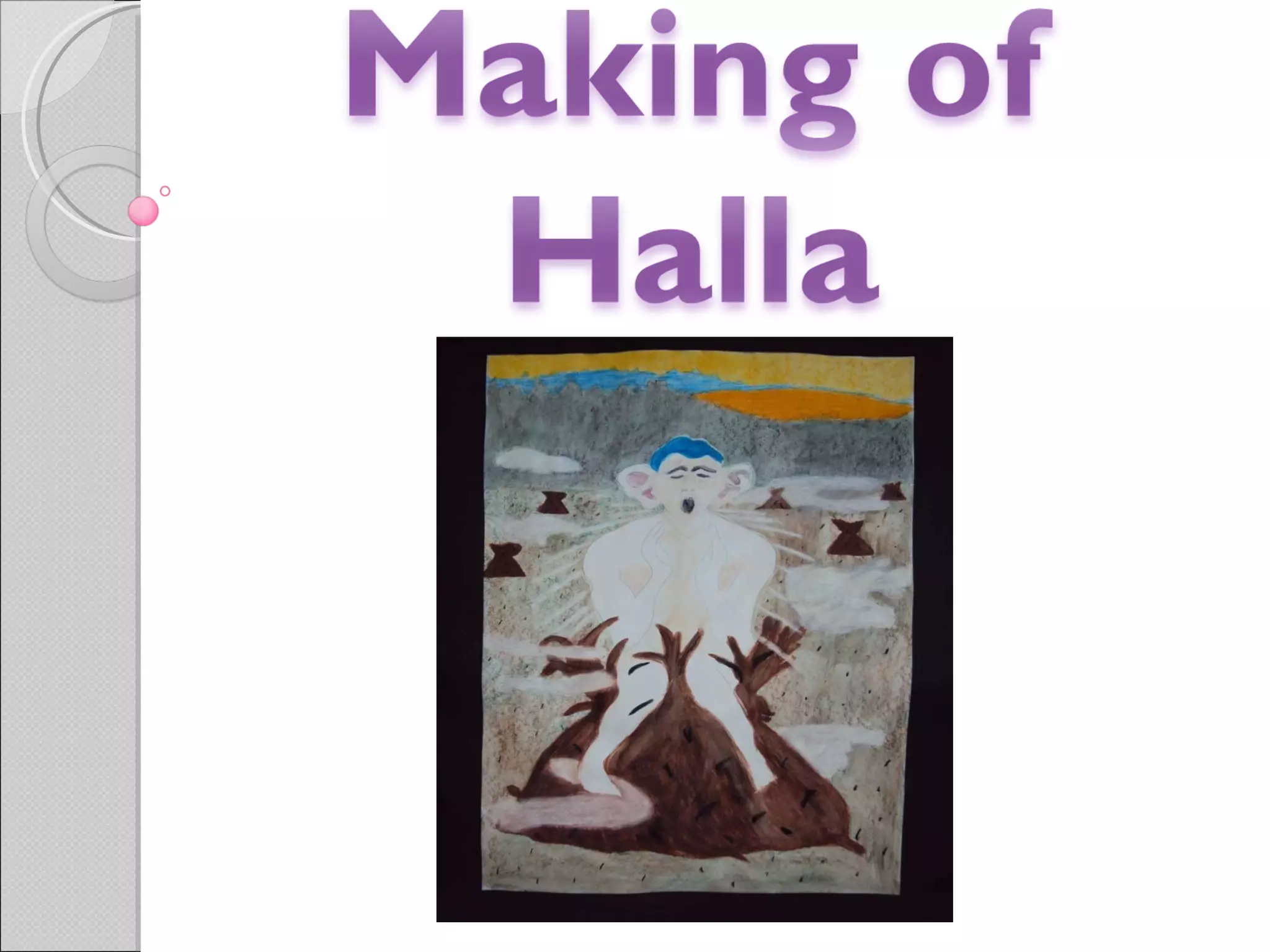 The document describes a school project about the painting "Halla" by Hugo Simberg. Students analyzed the painting and created their own versions. Younger students painted backgrounds and cut out Halla figures to glue on. The class researched Simberg and the concept of Halla, creating posters. They also used the painting to inspire short fictional stories about Halla visiting a farm at night and covering the fields with halla.