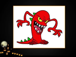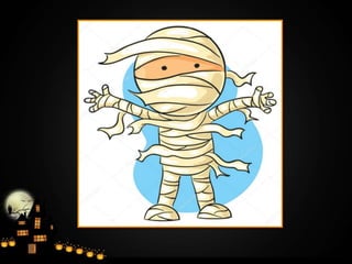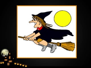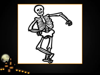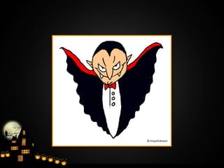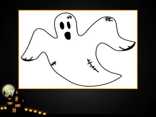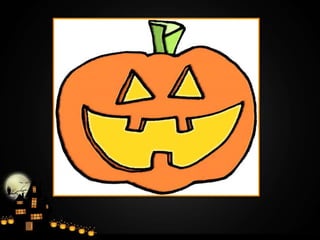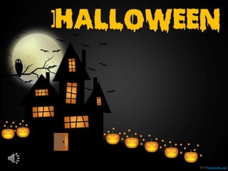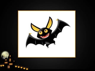 Halloween is celebrated on October 31st. Common Halloween traditions in countries like England and Spain include children dressing up in costumes and going door-to-door collecting candy by saying "trick or treat." Halloween colors include black, orange, purple, and green. People also carve pumpkins and have Halloween parties where they tell scary stories and play games. The document provides words and pictures related to common Halloween symbols like bats, ghosts, vampires, and skeletons. It encourages celebrating Halloween by dressing up and wishing each other a happy Halloween.