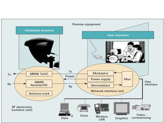 - The system is proposed to provide broadband services like internet, telephony, broadcasting to customers using low-cost user terminals with minimal power requirements.