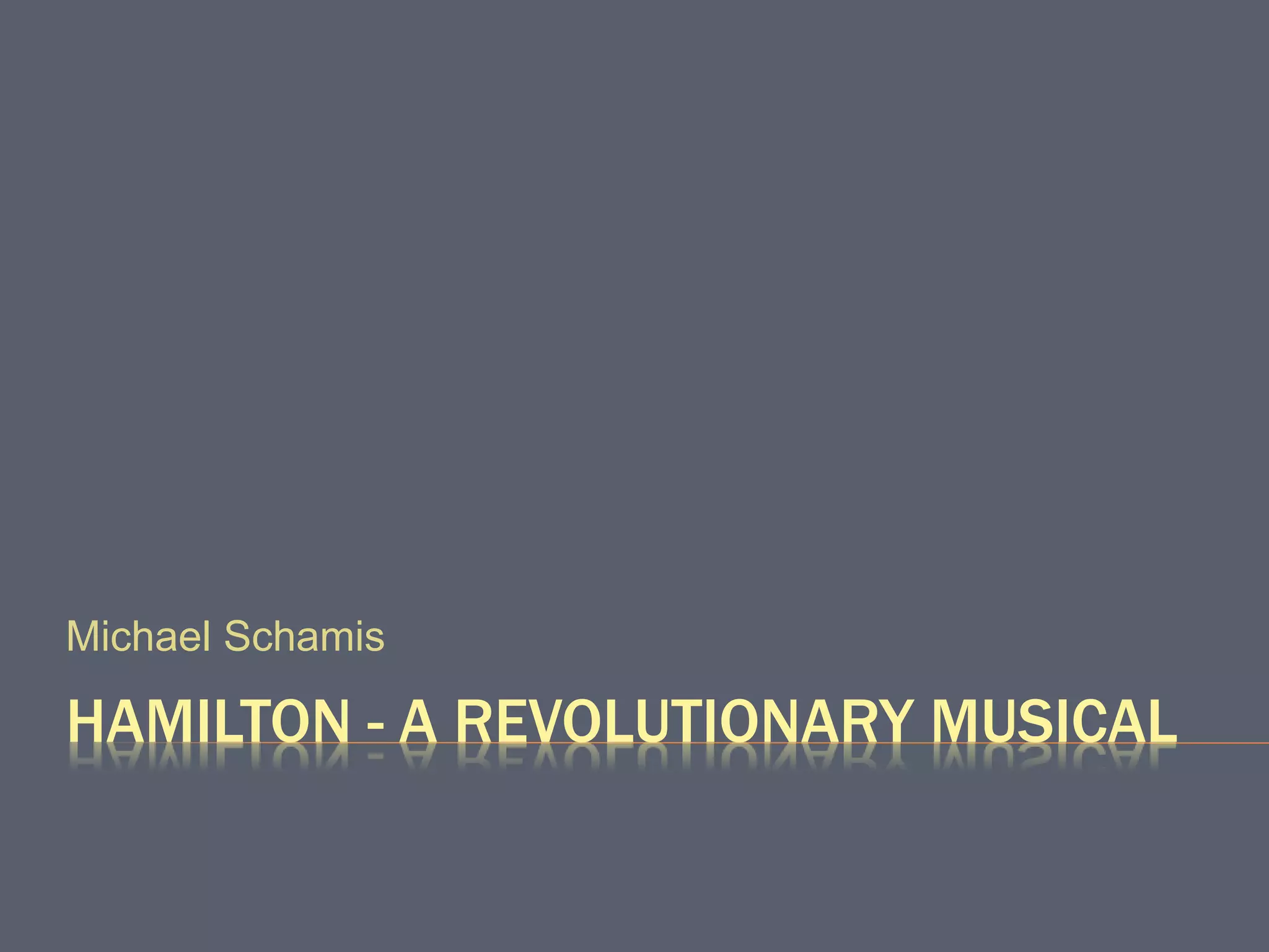The document discusses the musical 'Hamilton,' created by Lin-Manuel Miranda, which premiered on Broadway in 2015 and recounts the life of founding father Alexander Hamilton. It highlights the show's revolutionary nature, particularly its use of hip-hop and diverse casting to make American history more accessible. This creative approach emphasizes the relevance of its themes to contemporary audiences.