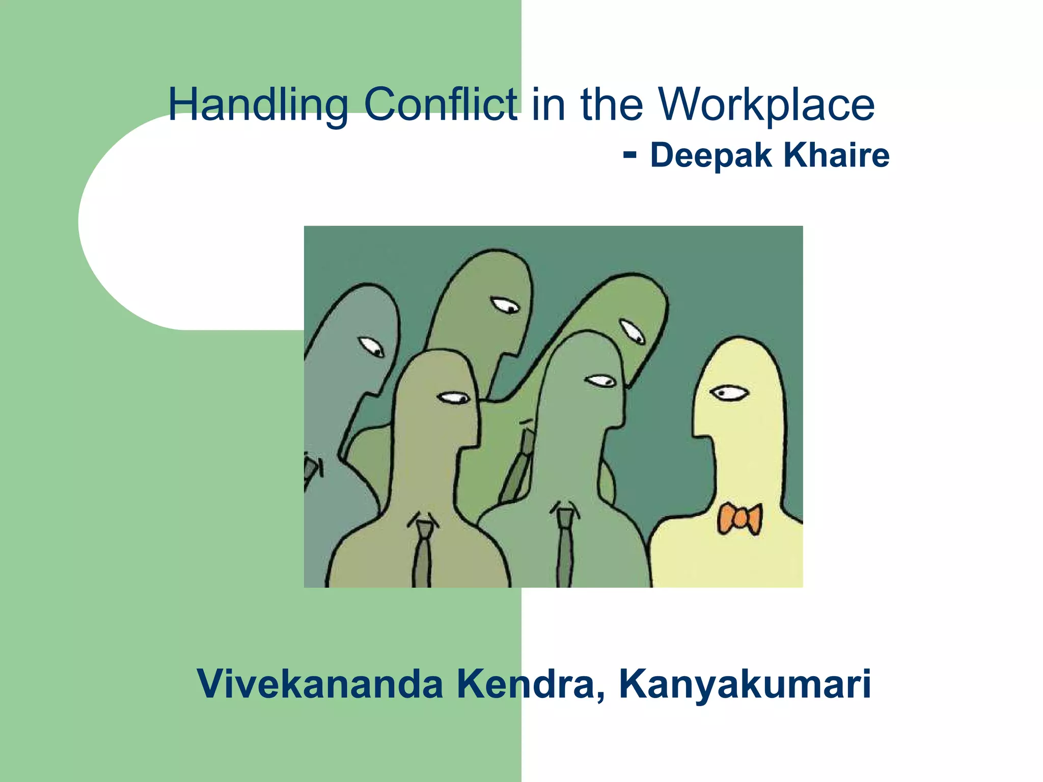 The document discusses several key points about handling conflict in the workplace: