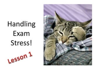 This document addresses exam stress, explaining its definition and impacts on students, both positive and negative. It emphasizes the importance of recognizing stress and how to manage it, suggesting that individuals can turn to Jesus for relief. The lessons include biblical references and encourage sharing personal struggles and seeking divine assistance.