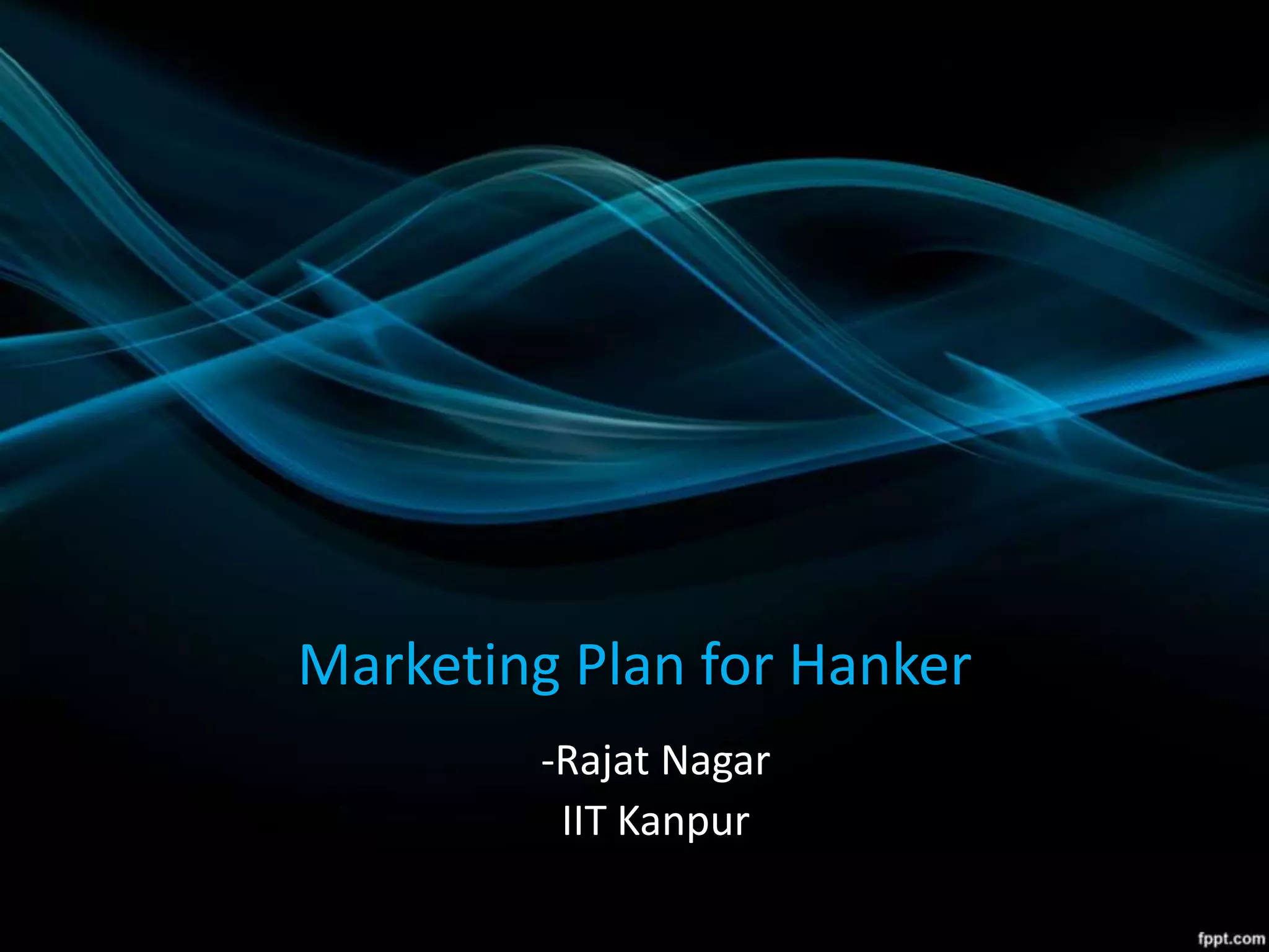 This document provides a marketing plan for a new dating app called Hanker. The plan outlines an overview, goal, and strategy. Hanker aims to improve upon Tinder by allowing users to connect with known people from their Facebook friends list or Instagram followers rather than just random people. It will have both free and premium versions. The goal is growth of over 1 million users in the first year and 10 million in the second year by targeting youth. The strategy involves connecting Hanker to Facebook and Instagram to access user friends lists and profiles. It will have competitive advantages over Tinder by addressing its shortcomings.