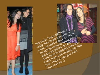 The document appears to be a collection of birthday messages for someone named Sahib celebrating their 22nd birthday. The messages wish Sahib a happy birthday and express love and fond memories of their friendship over the years. Well-wishers mention inside jokes and hopes for continued closeness despite physical distance. The tone is overwhelmingly positive and celebratory.