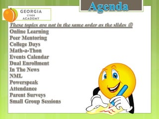 This document provides information for students attending Georgia Cyber Academy High School about various online learning resources and requirements: