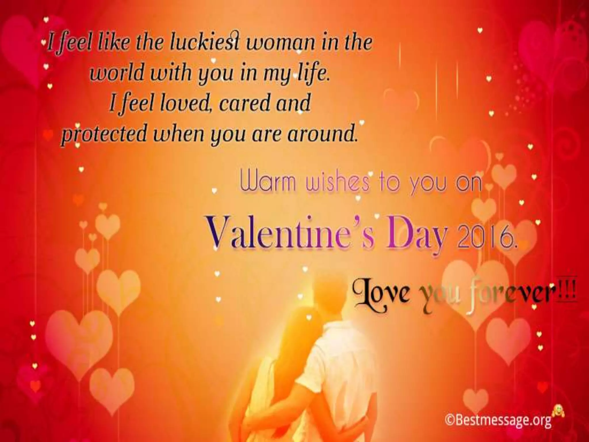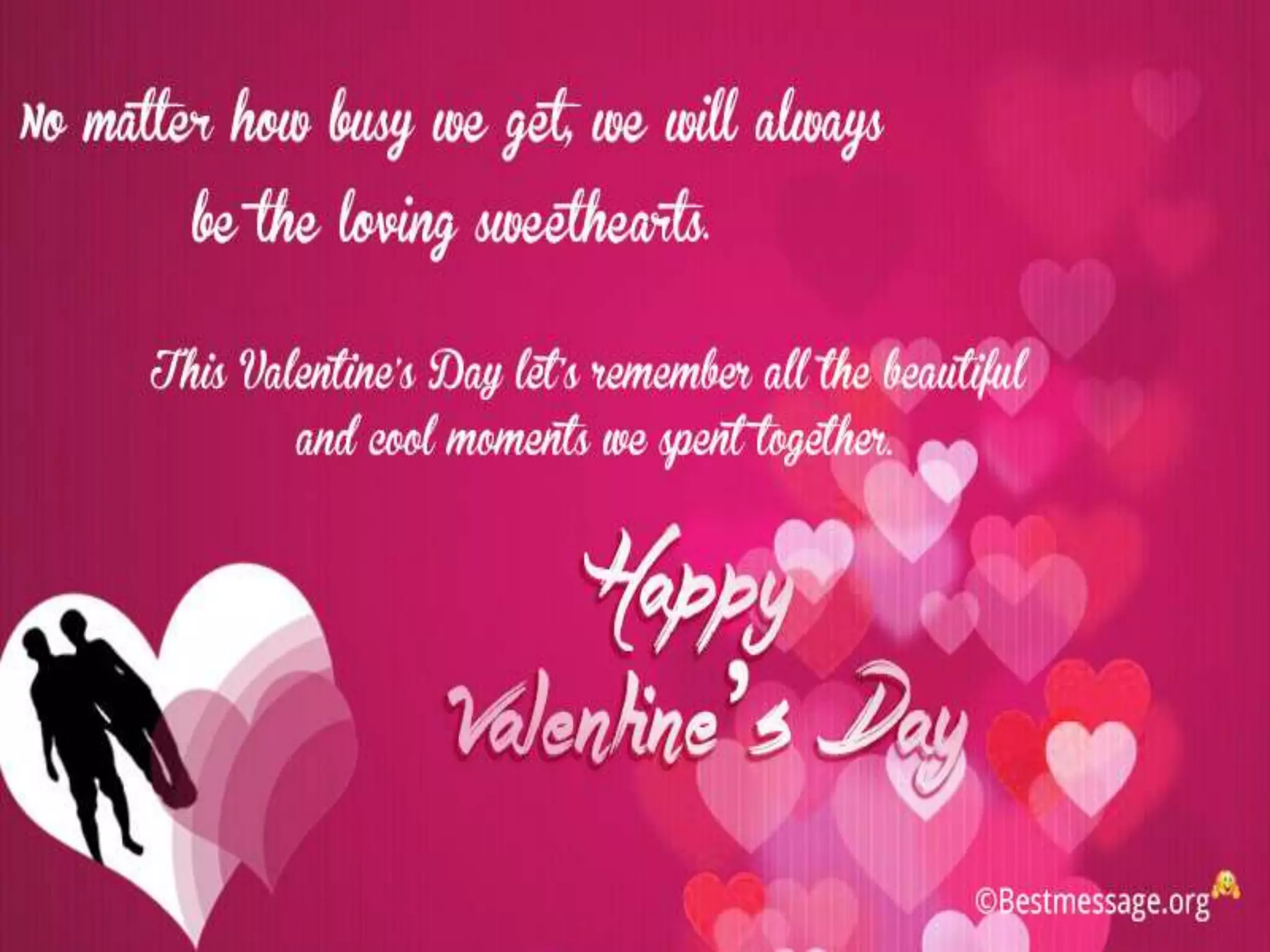 The document provides a collection of sweet and romantic Valentine's Day wishes and messages tailored for various relationships. It includes quotes and greetings suitable for sharing on platforms like WhatsApp and Facebook. The focus is on celebrating love on February 14th.