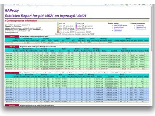 This document discusses using HAProxy as a load balancer and discusses its benefits and uses. It describes how HAProxy can be used to make non-highly available services highly available and provide load balancing. It also discusses ways to address potential single points of failure with HAProxy, such as using Corosync and Pacemaker to set up redundant HAProxy clusters. Upstream failures from slow databases or application servers are also addressed.
