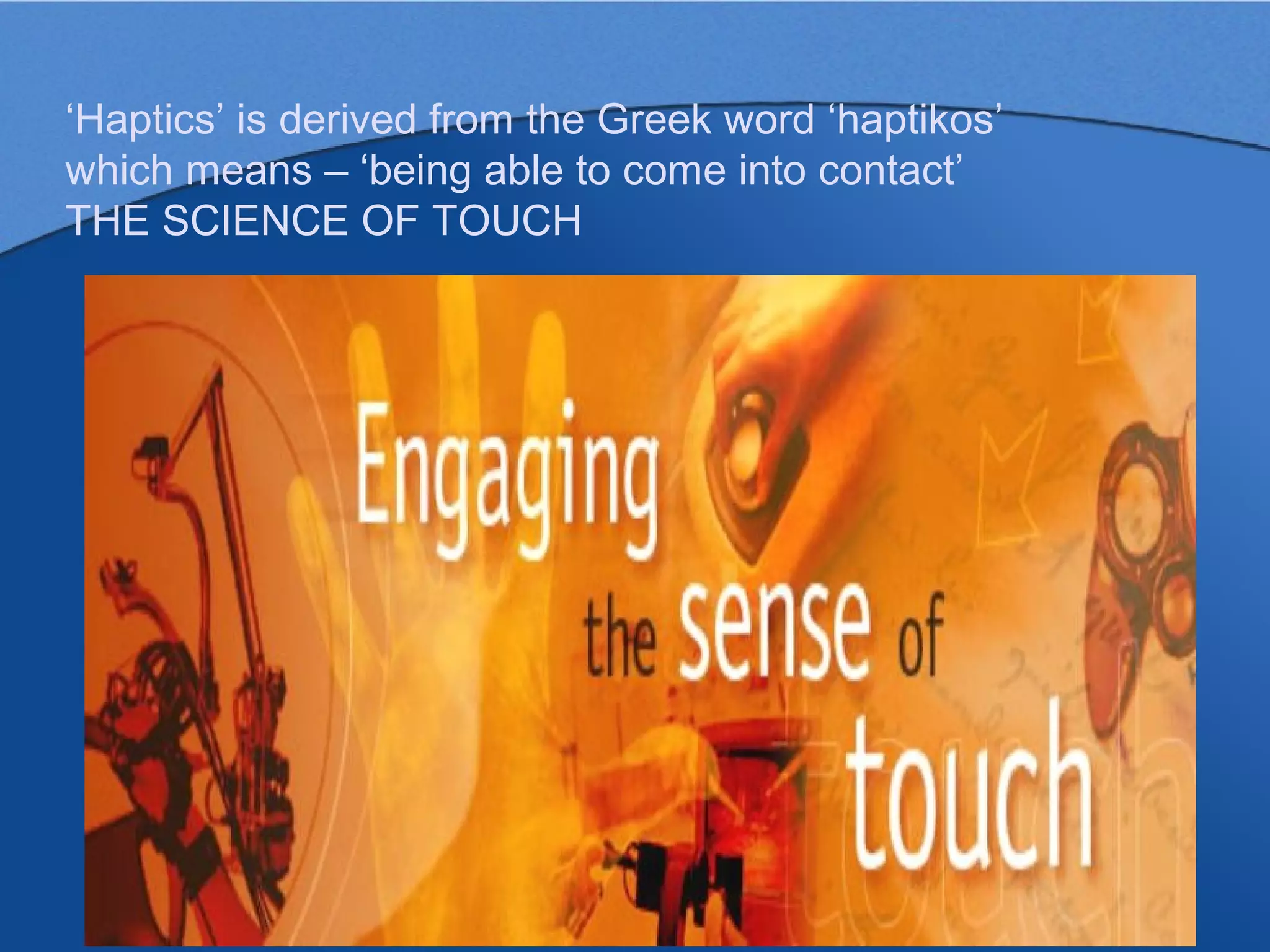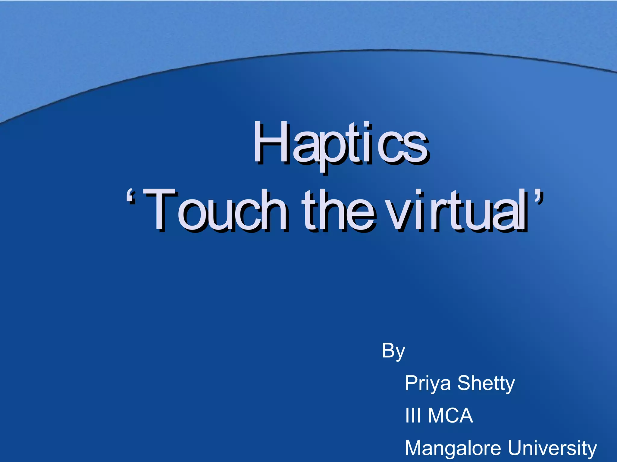 Haptics is the technology that adds the sense of touch to virtual environments. It allows users to feel virtual objects through haptic devices that provide tactile and force feedback. Haptics has applications in gaming, virtual reality, virtual surgery, and more. Some examples of haptic devices include the Phantom device, CyberGrasp, and exoskeletons. While haptics enhances virtual experiences, it also has disadvantages like high costs and technical challenges.