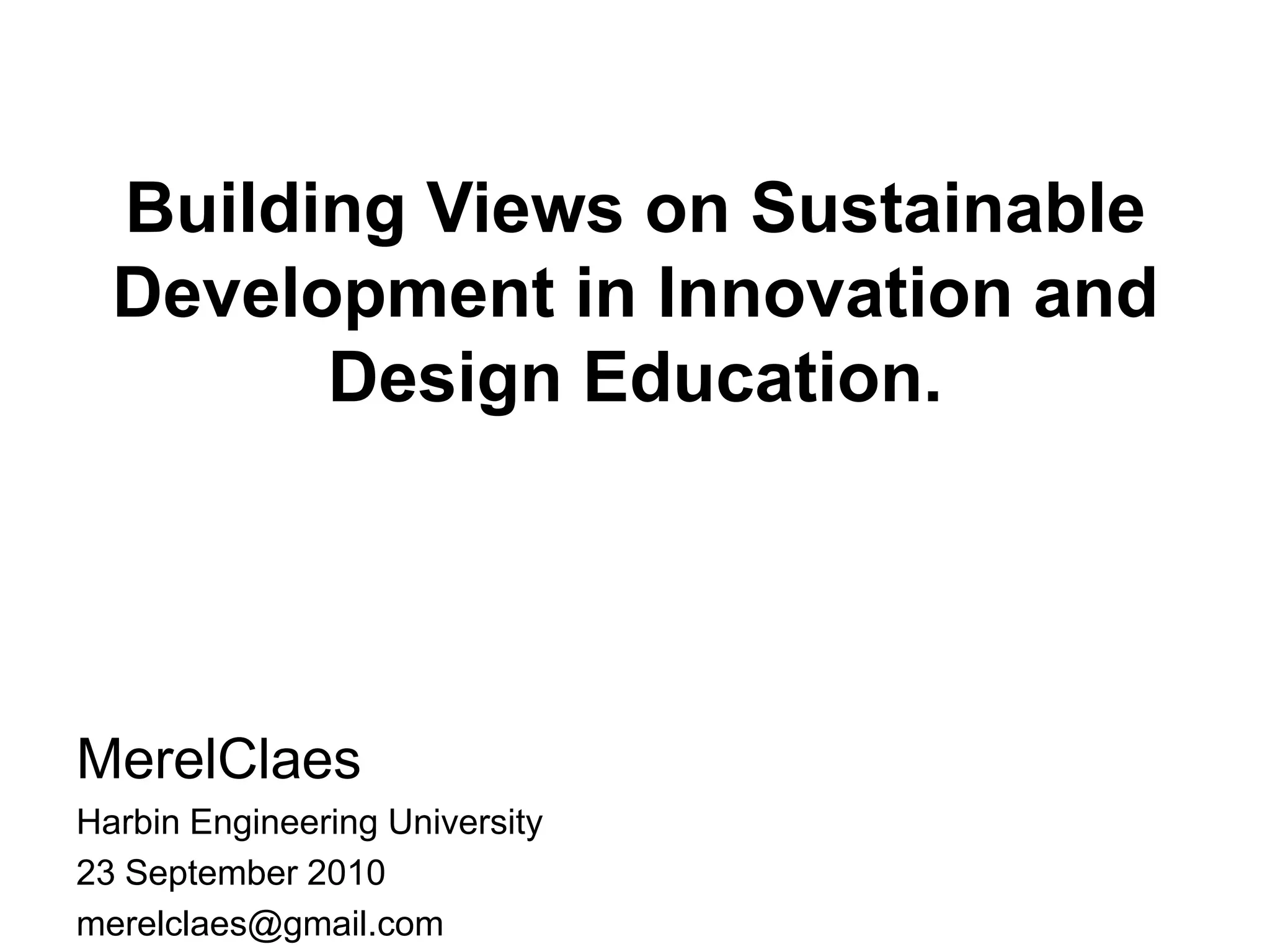 This document discusses views on sustainable development in innovation and design education. It raises questions about whether higher education provides the proper worldviews and if graduates lack vision for sustainable development. It explores how innovation, design, and education can contribute to sustainable development through interdisciplinary collaboration and shared visions. The document suggests design education may be key to training future professionals to become change agents for sustainability.