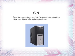 MICROPROCESADOR És elcerbell de l'ordinador. S'encarrega de fer tots els calculs i operacions complexes.