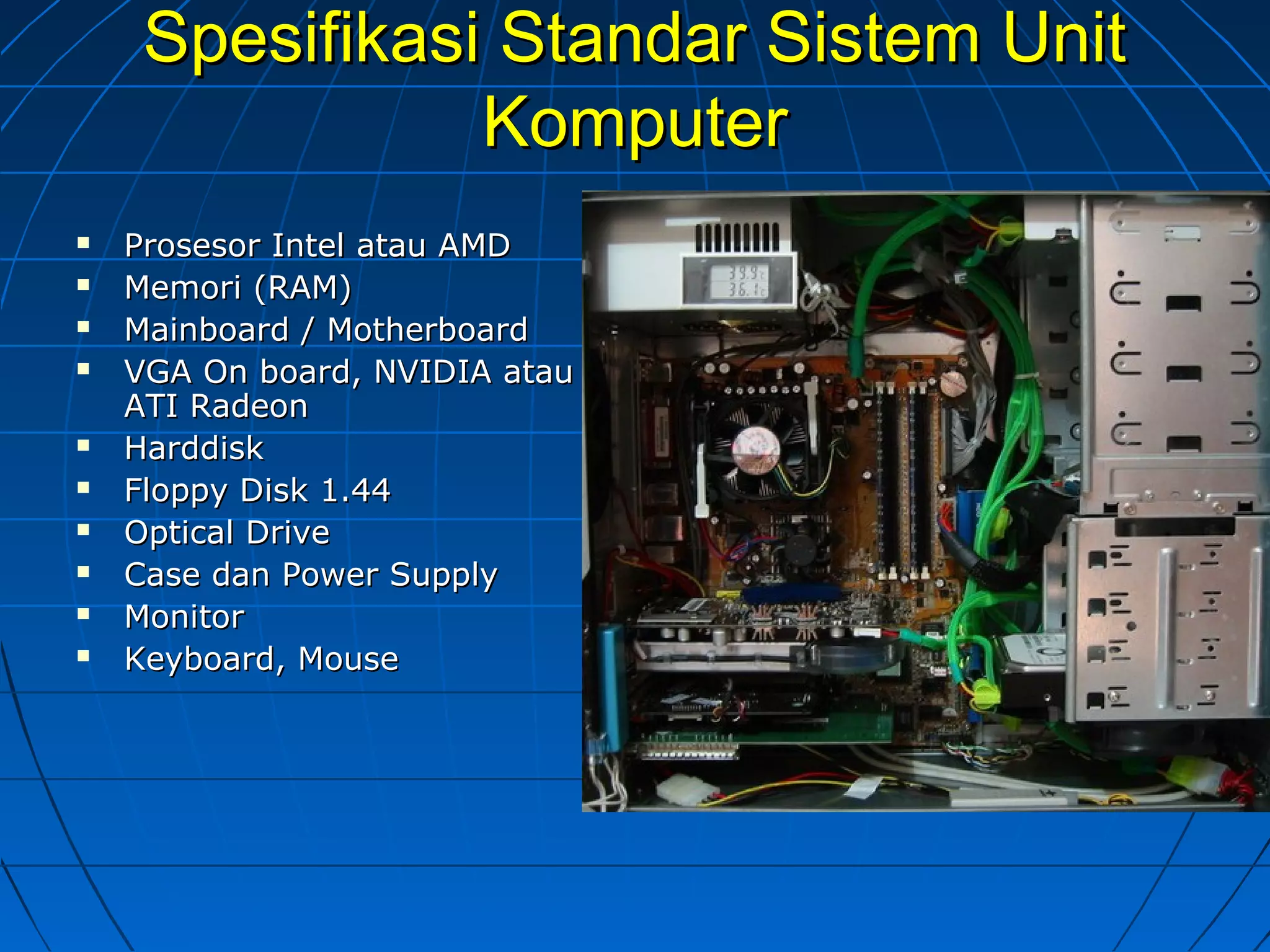 Dokumen ini membahas perangkat keras dan spesifikasi standar pada sistem unit komputer, termasuk prosesor, memori, motherboard, dan perangkat pendukung seperti harddisk dan vga. Selain itu, dijelaskan juga tentang penghitungan kapasitas harddisk, serta perbandingan kelebihan dan kekurangan laptop dibandingkan dengan PC. Informasi ini memberikan pemahaman dasar tentang komponen utama dalam sistem komputer dan fungsinya.