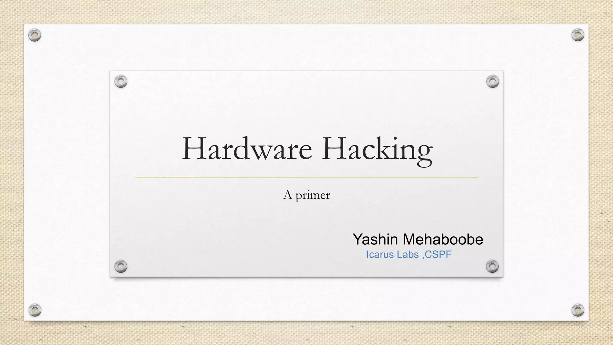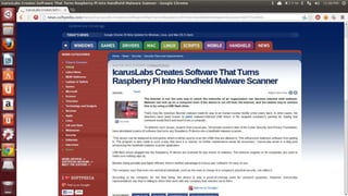 This document provides an introduction to hardware hacking using Raspberry Pi and Arduino. It discusses why hardware hacking is interesting and rewarding as it allows interacting with the physical world. It then provides tutorials on basic projects like blinking an LED using Raspberry Pi and Arduino to illustrate hardware interfacing concepts. These include using GPIO pins on Raspberry Pi and digital pins on Arduino boards. The document encourages exploring additional capabilities like I2C, SPI and serial communication. It also introduces Arduino shields and provides examples of infrared communication and emulating human interface devices.