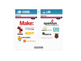تتناول الوثيقة موضوع الريادة والمشاريع الناشئة العتادية، موجهة نحو خطوات التصميم والتصنيع من الفكرة إلى المنتج. تقدم الوثيقة إرشادات حول كيفية معالجة المشاكل الواقعية عبر الابتكار، وتحتوي على أمثلة ملهمة لمشاريع ناجحة. كما تؤكد على أهمية فهم احتياجات السوق وتجميع المعلومات من المستخدمين قبل إطلاق المنتج.