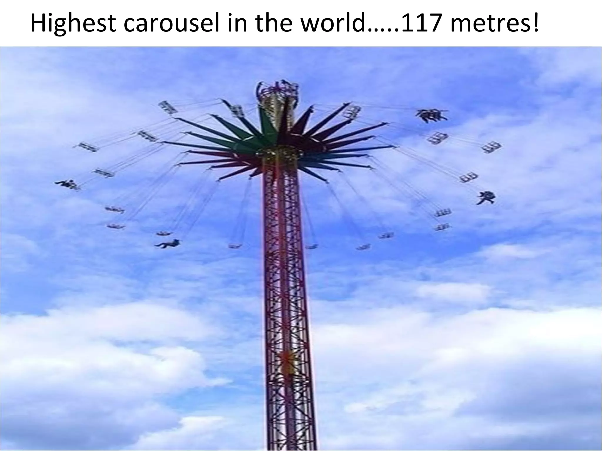The document provides brief descriptions of various locations around the world, including the highest carousel in the world at 117 meters, a restaurant accessible by walking or boat depending on wave conditions on a cliff, and deserts with colorful flowers. Other locations mentioned are aerostuds in Turkey, the highest tower in Dubai, the border between Belgium and Holland in a cafeteria, fish migration in Mexico, where the Baltic and North Seas meet, a day/night statue in Lithuania, tunnels in a California national park, a statue in France, the longest traffic jam in China at 260 km, a computer game store floor in Paris, a bridge in South Korea, wealth disparity in Brazil, unique rock formations in China, clear