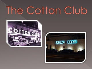 The Cotton Club was a famous Harlem nightclub opened in 1923 by a white gangster. It featured only African American entertainers such as Duke Ellington, Ethel Waters, and Cab Calloway performing for exclusively white audiences. In the late 1920s, Duke Ellington convinced the club to start admitting African American patrons. The club was a major influence on popular culture and entertainment at the time.