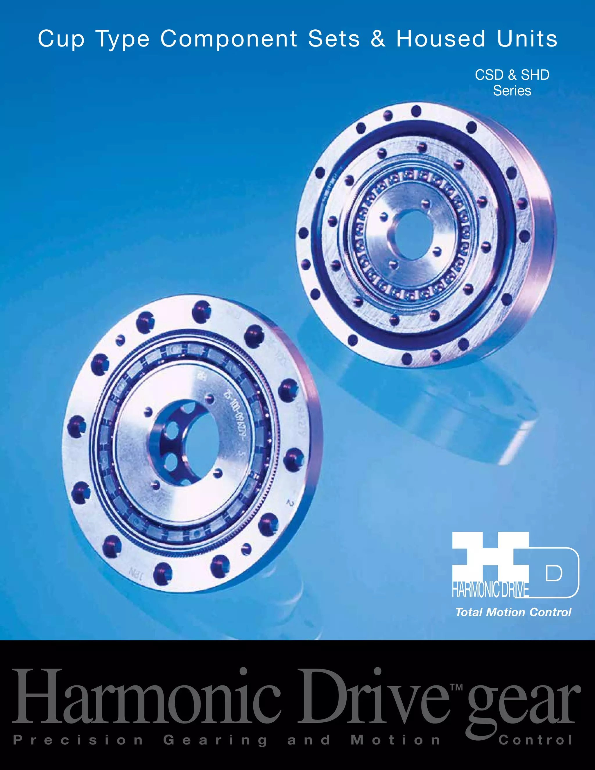 This document provides information about Cup Type Component Sets (CSD) and Housed Units (SHD) harmonic drive gear products from Harmonic Drive, including:
