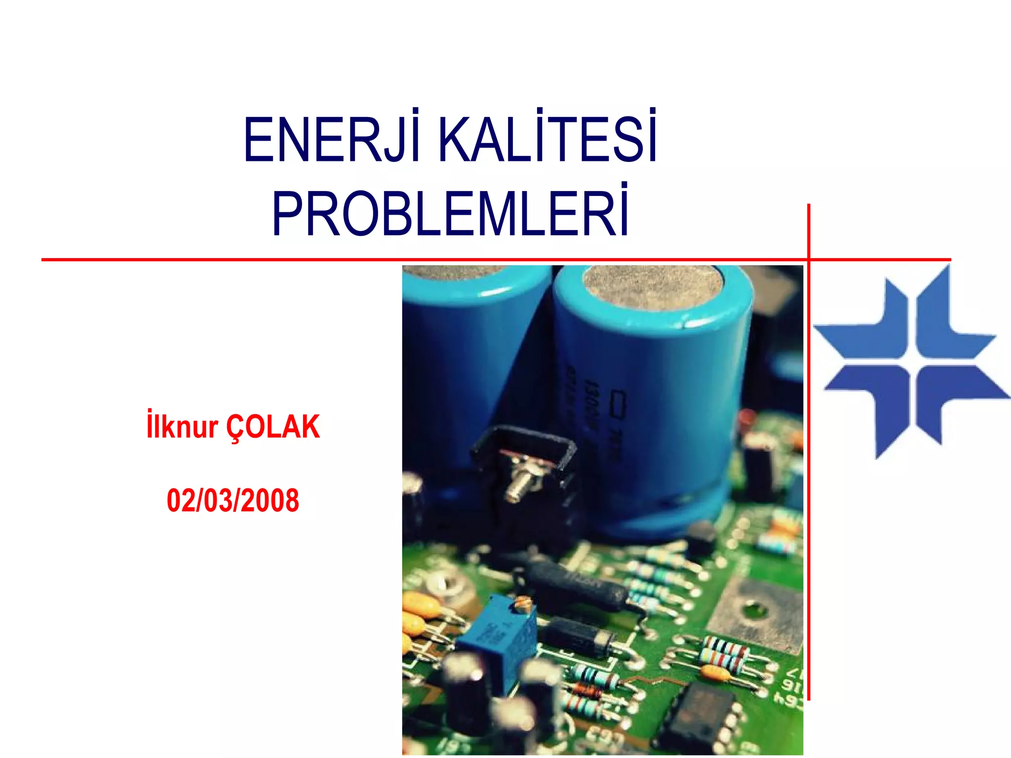 GÜÇ KALİTESİ NEDİR?Enerji sürekliliği Sbt. gerilim + Sbt. frekans 0,9<Cos φ Dengeli üç faz Akım ve gerilimde düşük harmonik