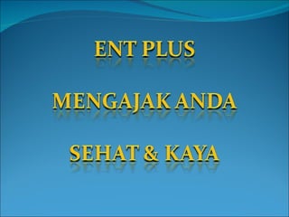 Secara Umum MarketingPlan terbagi menjadi 2 Pola Matrik Sistem (Binary) Matahari Sistem (Murni) MARKETING PLAN ENT PLUS gabungan MATRIK SISTEM dan MATAHARI SISTEM BESAR dan TAHAN LAMA BINARY MATAHARI Fronline Dibatasi 1. Fronline Tidak Dibatasi 2. Bonus Diawal Besar 2. Bonus Diawal Kecil 3. Bonus Dibayar Mingguan 3. Bonus Dibayar Bulanan 4. Tanpa Syarat Tutup Point 4. Syarat Tutup Point 5. Tidak Jangka Panjang 5. Jangka Panjang