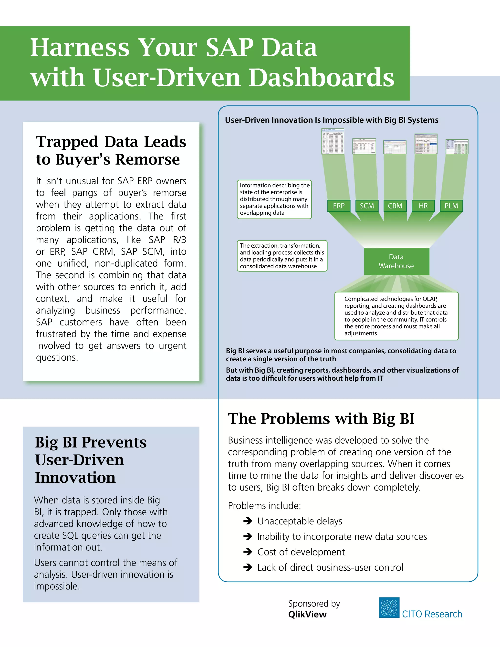 - SAP customers often feel regret when trying to extract and analyze data from multiple SAP applications like ERP, CRM, and SCM. It is difficult and time-consuming to consolidate this data.
