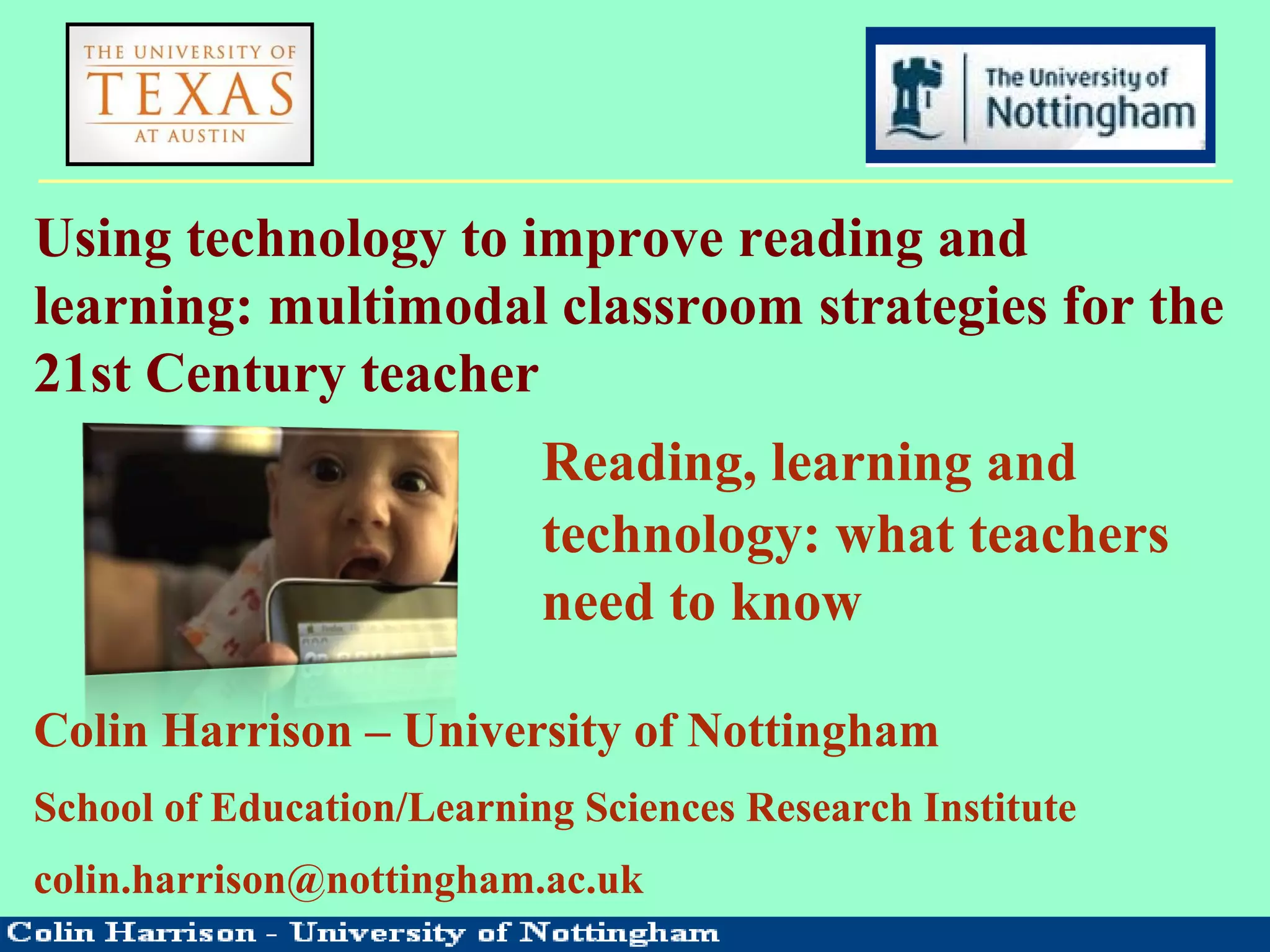 The document discusses Colin Harrison's talk on using technology to improve reading and learning. It summarizes his research background from 1980-2012 studying how technology supports literacy and learning. It also outlines the key points he will cover: 1) How he got to where he is, 2) What his book says about where education needs to go, and 3) How to get there using technology to develop critical internet literacy skills.