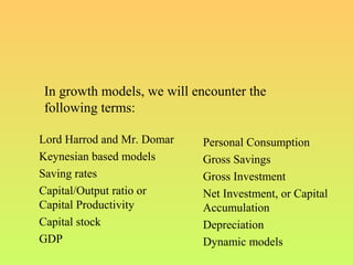 The Harrod-Domar growth model uses 3 key variables to determine the growth rate: