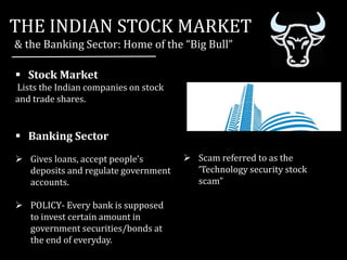 Harshad Mehta, known as the 'Big Bull,' rose from modest beginnings to become a prominent figure in the Indian stock market, only to orchestrate the 'technology security stock scam' that led to his arrest for misappropriating shares worth INR 4,000 crore. His scandal involved fake bank receipts and resulted in his conviction in 1999, alongside significant losses for investors and ongoing legal repercussions. The aftermath of the scam raised serious questions about government policy and financial regulations in India.