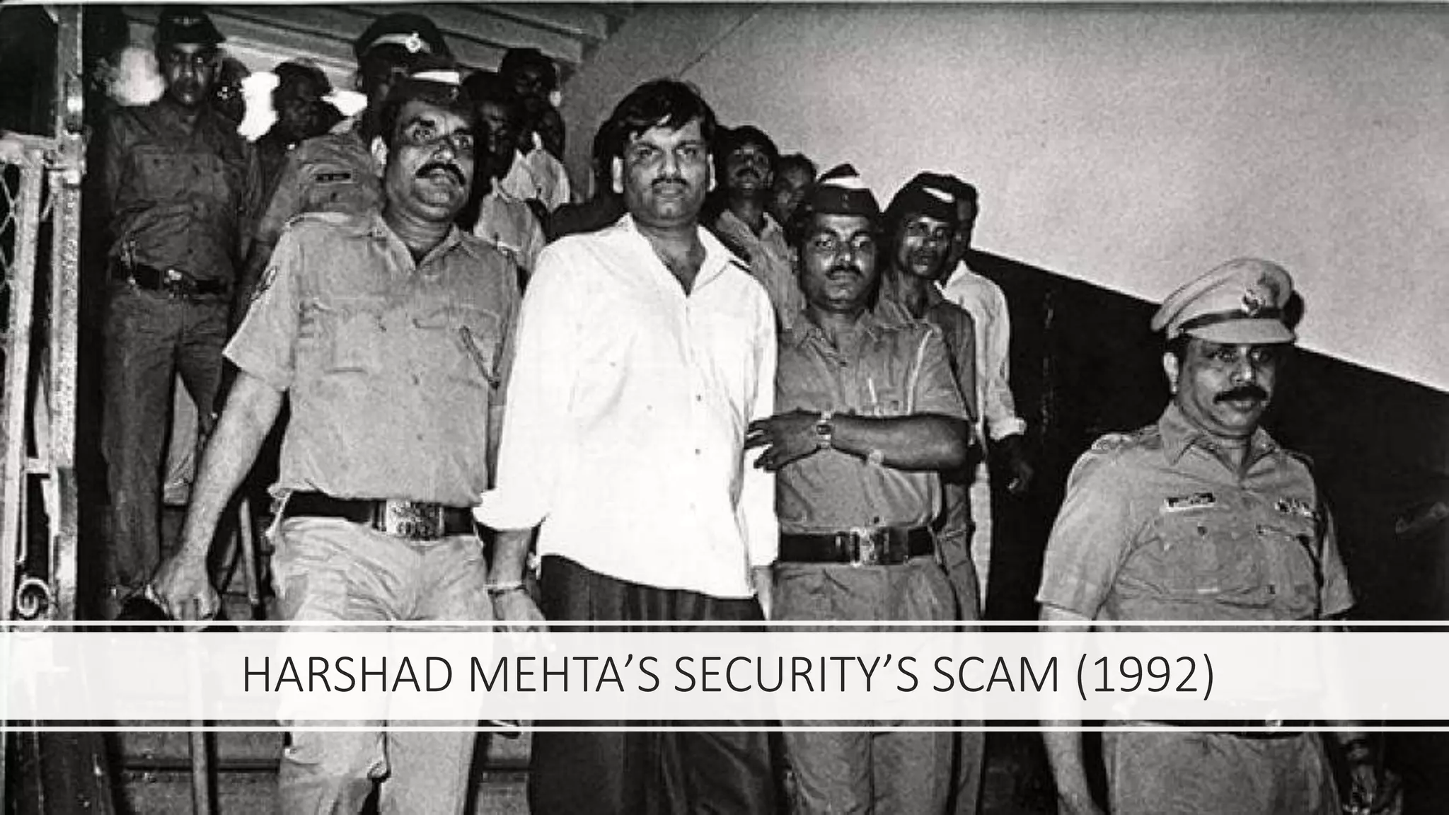 Harshad Mehta, a prominent stock broker, orchestrated a massive securities scam in 1992 by manipulating the stock market through fraudulent bank receipts, borrowing almost Rs 4000 crores. His actions led to 72 criminal charges and approximately 600 civil actions after the scam was exposed by journalist Sucheta Dalal, revealing the unethical practices that inflated stock prices. The aftermath saw significant impacts on various banks and the loss of public trust, culminating in Mehta's arrest and eventual death in 2001.