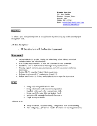 - Harshal Banchhod is seeking a management position utilizing his leadership and project management experience.