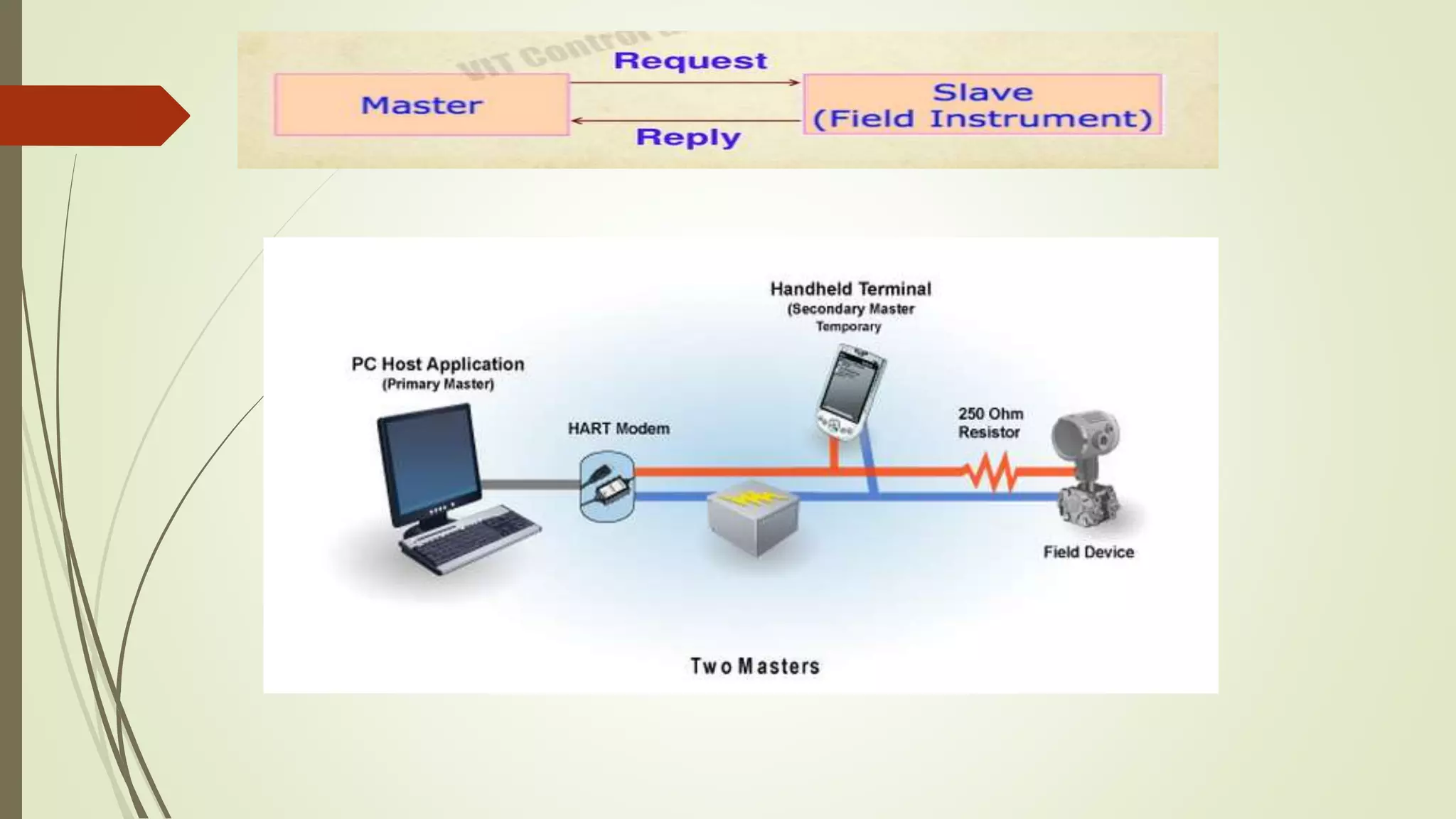 The HART protocol allows field instruments to communicate digitally by superimposing an FSK signal on top of the traditional 4-20mA analog signal. It operates at 1.2kbps using 1,200Hz and 2,200Hz frequencies to represent binary 1s and 0s. HART can be used in point-to-point or multidrop modes and supports both master-slave and burst communication modes. The physical layer defines cable and connector specifications while higher layers ensure reliable data transfer and define supported commands. HART is globally accepted as it preserves existing control strategies and infrastructure.
