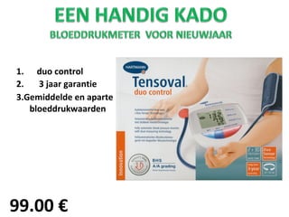 control 2. 3 jaar garantie 3.Gemiddelde en aparte bloeddrukwaarden 99.00 €
